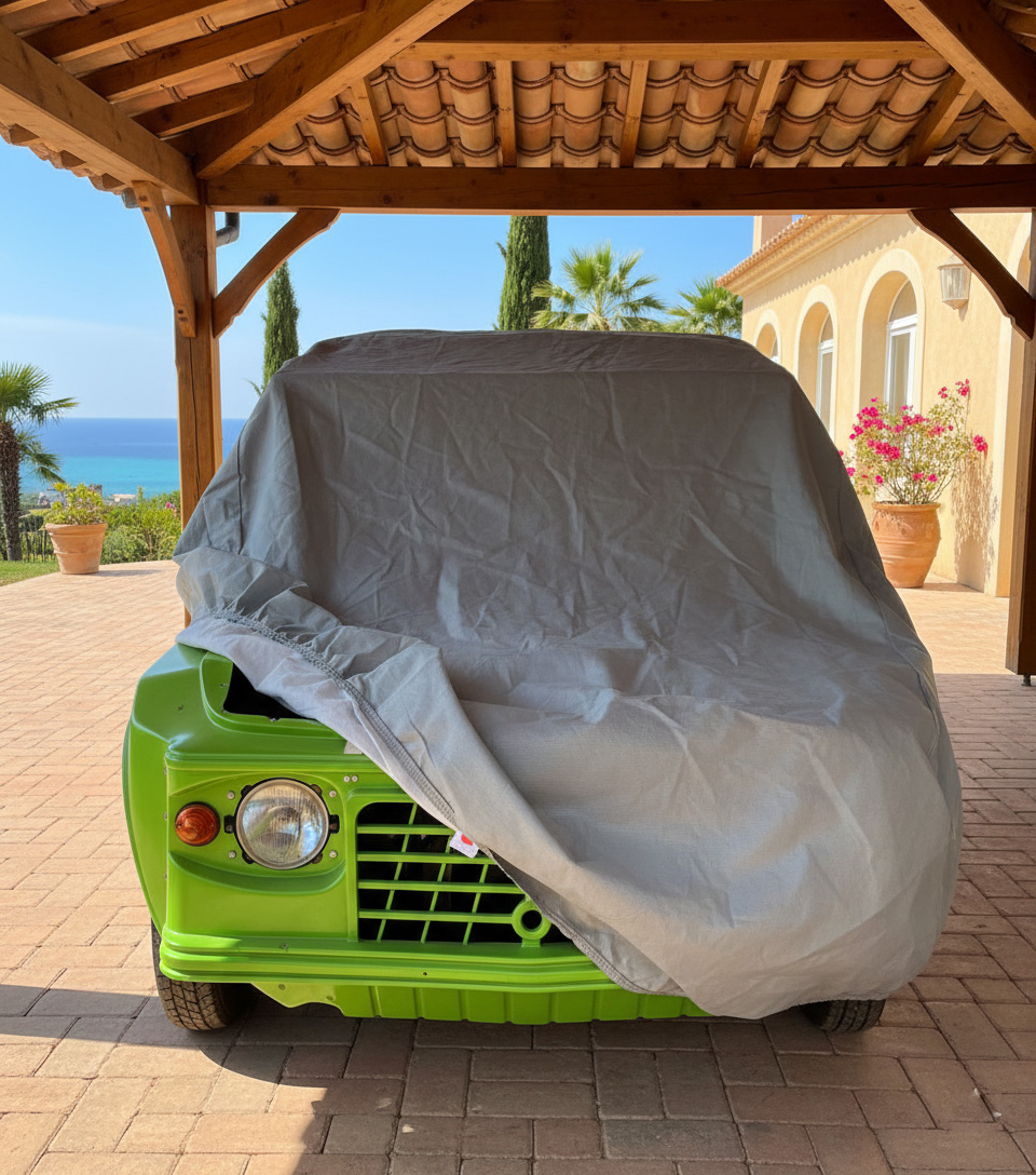 Une housse adaptée, c’est la garantie d’une Méhari prête à rouler dès le retour des beaux jours, sans nettoyage ni retouche.