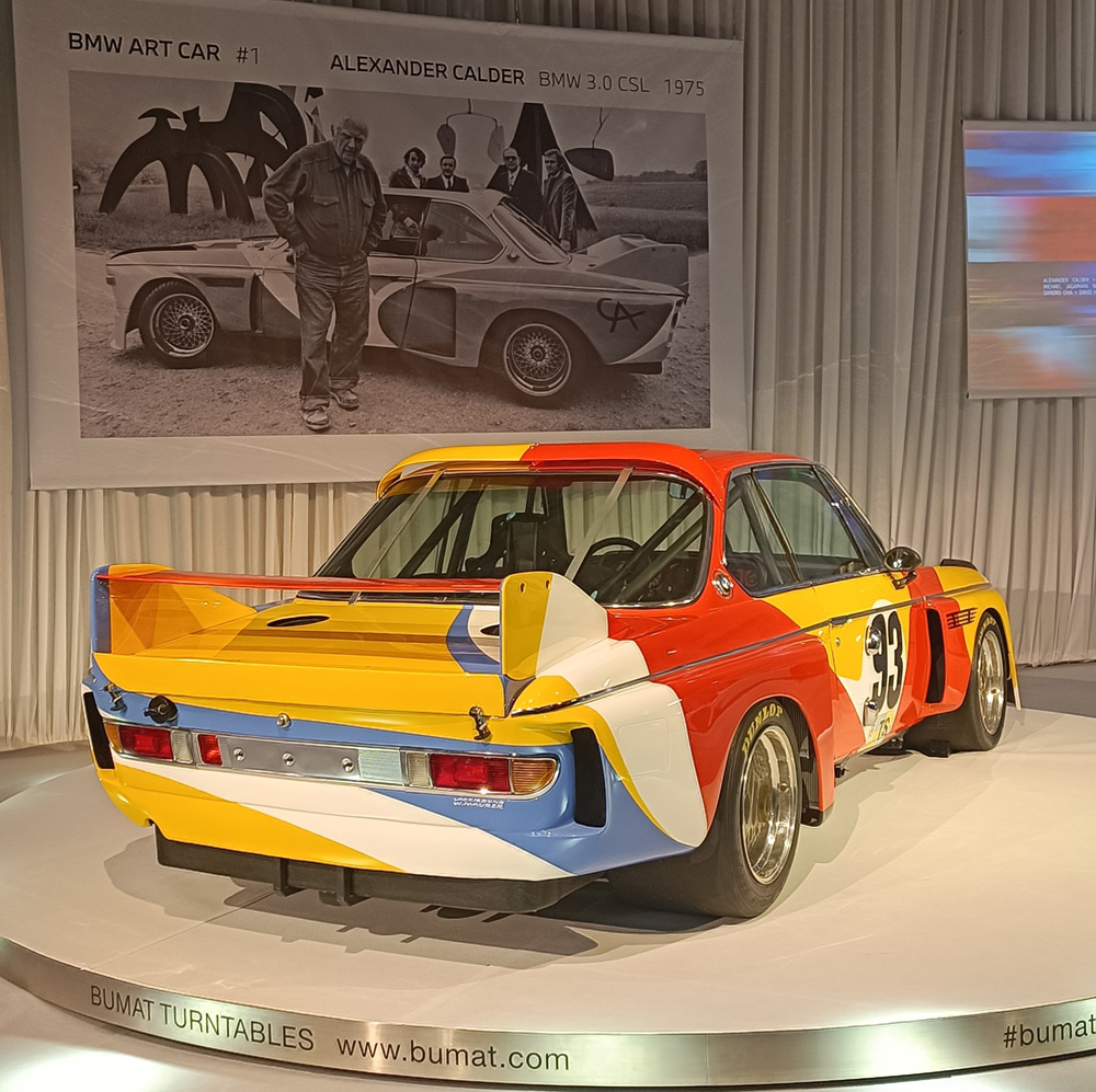 - L'icône originelle : La BMW 3.0 CSL d'Alexander Calder (1975). Elle trône sur son plateau tournant, rappelant que tout a commencé ici, par une explosion de couleurs primaires.